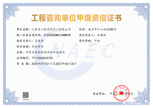 近日,中国工程咨询协会公布2024年第一批次工程咨询单位甲级资信评价结果,江苏省工程咨询中心有限公司再获工程咨询甲级综合资信和十三项甲级专业资信,是省内国有企业中唯一获得工程咨询甲级综合资信的单位,同时甲级专业资信数量也位居全国工程咨询单位前列。
