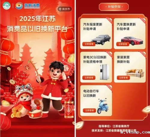 1月21日,中央电视台新闻频道《朝闻天下》栏目走进江苏,报道“苏新消费2025年消费品以旧换新平台”(以下简称“平台”)正式上线,引起各方关注。平台由江苏省商务厅牵头、省数据集团负责建设运营,集成汽车、家电、3C、家装家居、电动自行车等五个品类,集中发布政策和咨询电话等信息,为消费者提供一站式服务,消费者可以通过便捷、醒目的应用界面登录平台操作,一键完成资格申领,获得消费品以旧换新补贴。